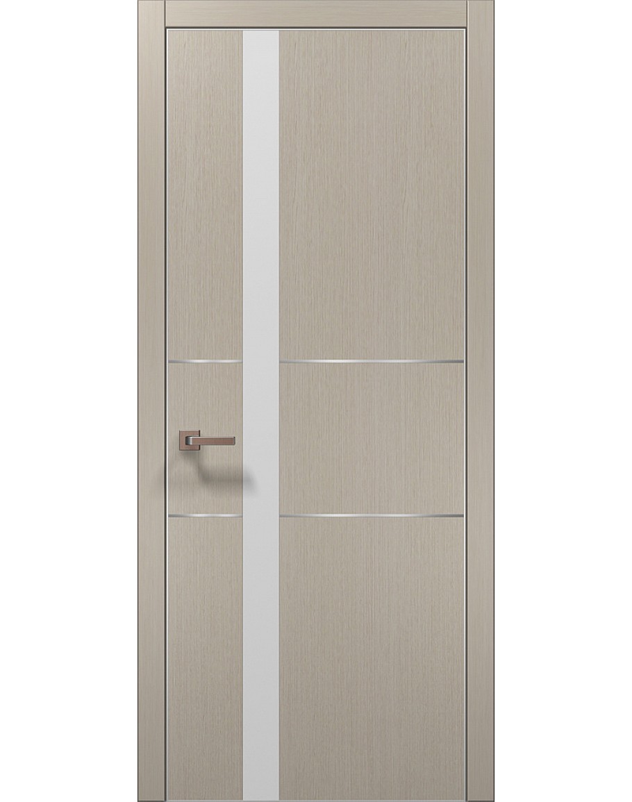Двері міжкімнатні Папа Карло PLATO-08 дуб кремовий брошований алюмінієвий торець – це сучасний мінімалістичний дизайн, який вражає своєю простотою і елегантністю. Гладкі дверні полотна з декоративним покриттям на основі поліпропілену від концерну RENOLIT (Німеччина) створюють стильний акцент в інтер'єрі, доповнений алюмінієвими вставками та склом, розташованими в одній площині з поверхнею дверей.