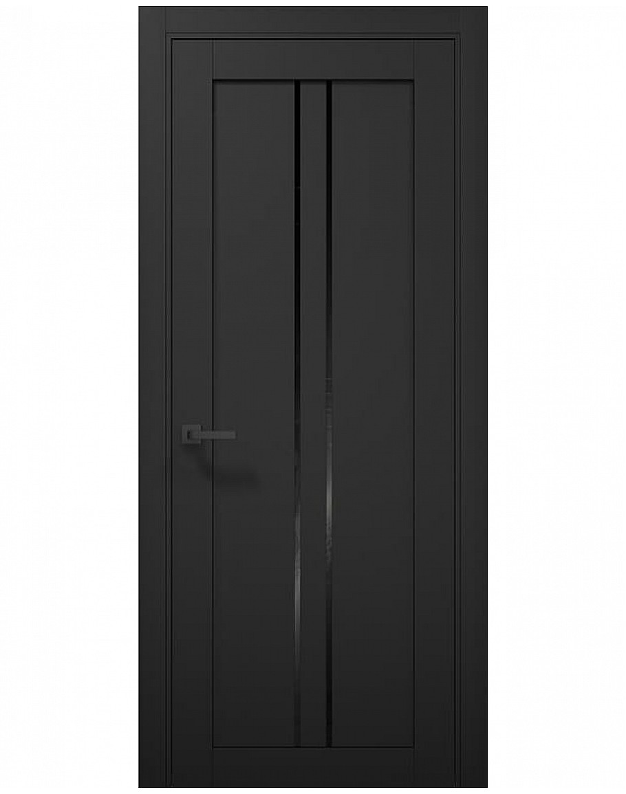 Двері міжкімнатні Папа Карло TETRA T-02 Чорний матовий, скло чорне – це збірні двері з високоякісним декоративним покриттям на основі ПВХ, створеним в Італії. Ідеальне поєднання візуального та тактильного ефектів, що надає дверям стильного вигляду.