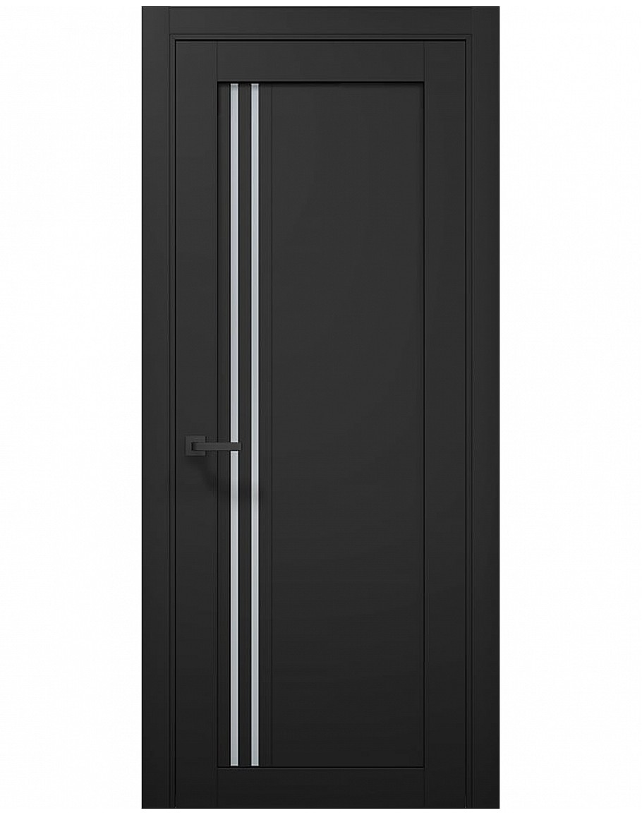 Двері міжкімнатні Папа Карло TETRA T-09 Чорний матовий, скло сатін – це збірні двері з високоякісним декоративним покриттям на основі ПВХ, створеним в Італії. Ідеальне поєднання візуального та тактильного ефектів, що надає дверям стильного вигляду.