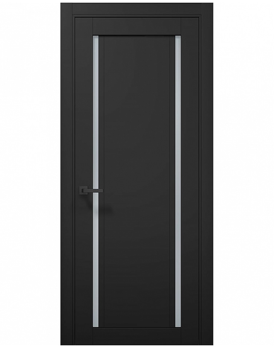 Двері міжкімнатні Папа Карло TETRA T-10 Чорний матовий, скло сатін – це збірні двері з високоякісним декоративним покриттям на основі ПВХ, створеним в Італії. Ідеальне поєднання візуального та тактильного ефектів, що надає дверям стильного вигляду.