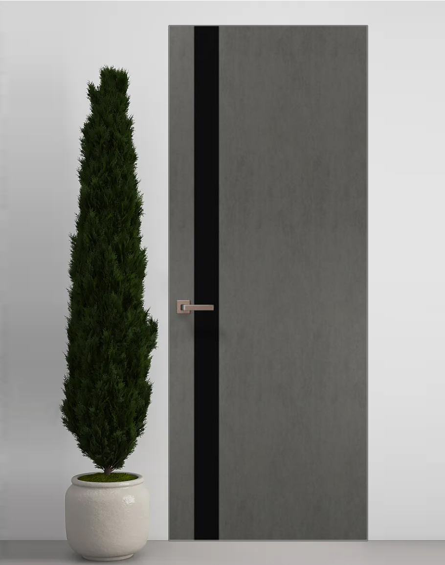 Двері приховані Папа Карло PL-04 Темно сірий супермат, кромка алюміній срібло