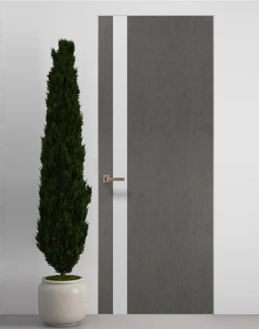 Двері приховані Папа Карло PL-04 Бетон сірий, кромка алюміній срібло