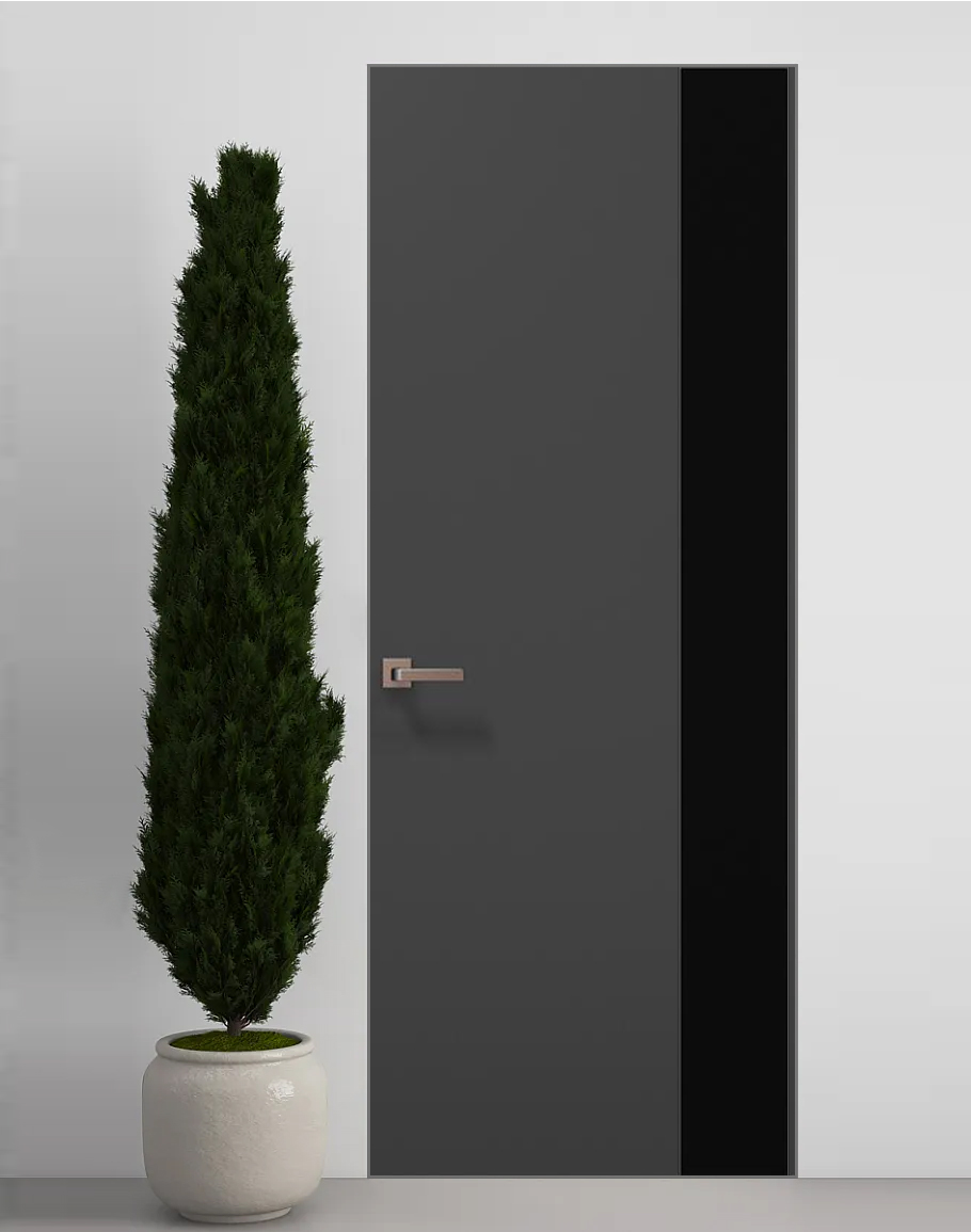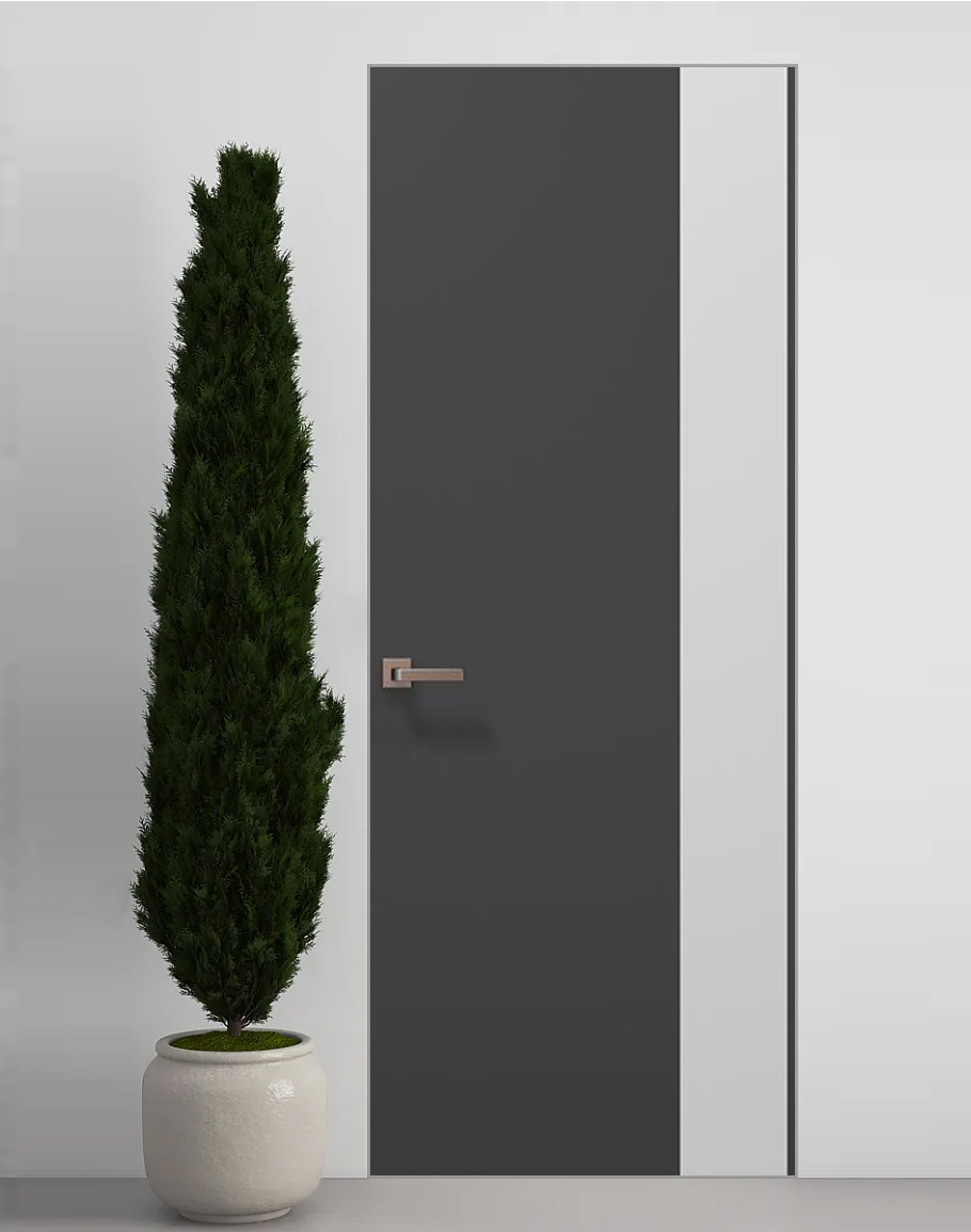 Двері приховані Папа Карло PL-05 Темно сірий супермат, кромка алюміній срібло