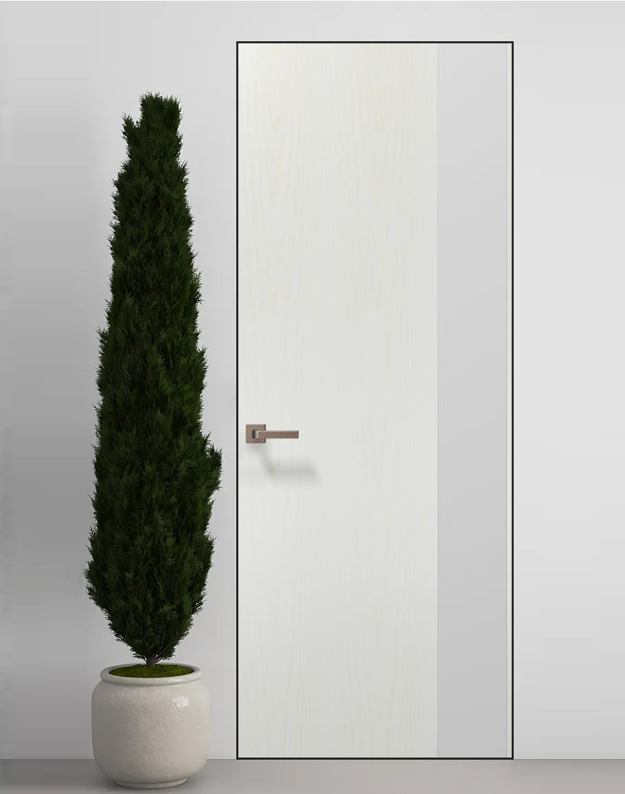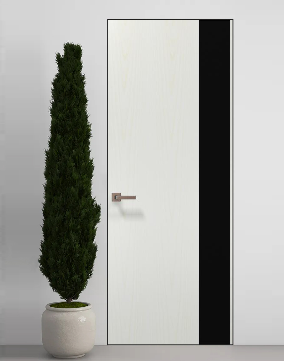 Двері приховані Папа Карло PL-05 Ясен білий, кромка алюміній чорний