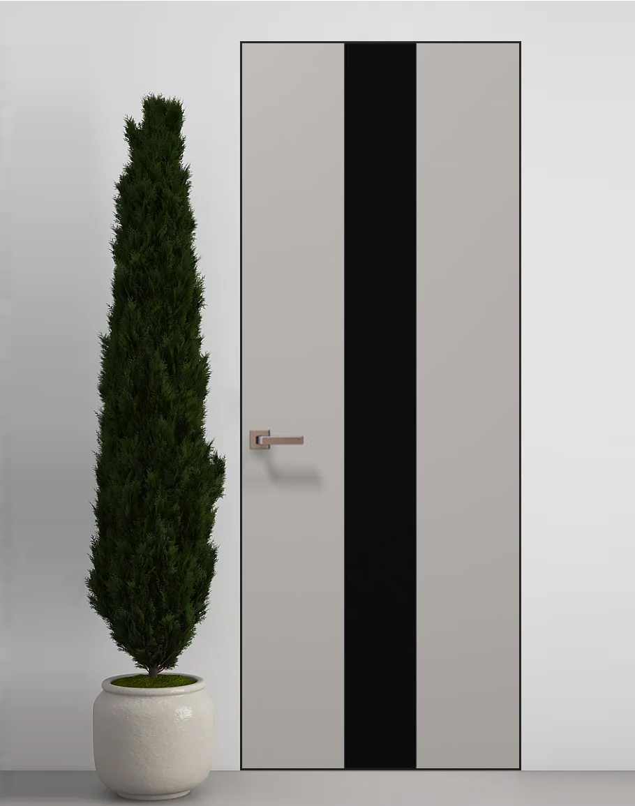 Двері приховані Папа Карло PL-06 Сірий матовий, кромка алюміній чорний