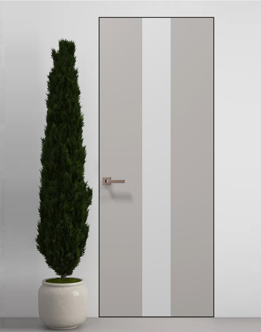 Двері приховані Папа Карло PL-06 Світло сірий супермат, кромка алюміній чорний