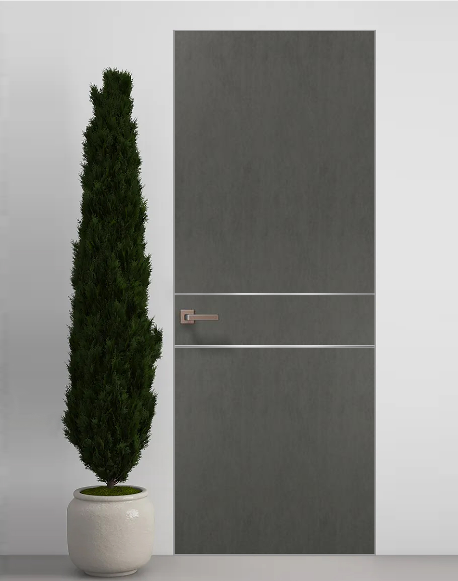 Двері приховані Папа Карло PL-07 Бетон сірий, кромка алюміній срібло