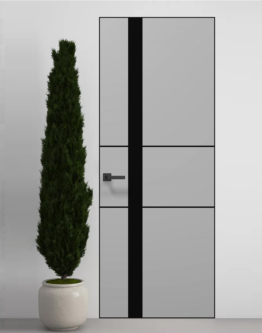 Двері приховані Папа Карло PL-08 Сірий матовий, кромка алюміній чорний